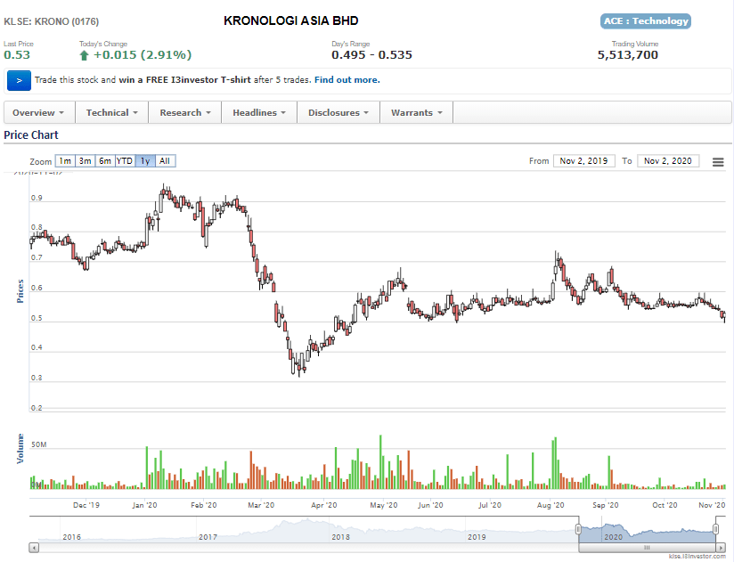 A few hours ago, a friend updated me on this information relating to KRONOLOGI (Kronologi Asia Berhad), a company I’ve had at the back of my mind for some time.