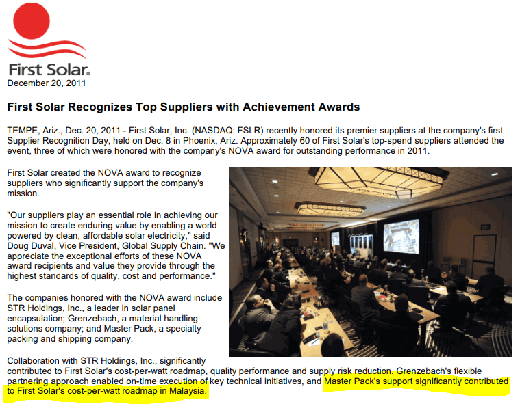 Over the years, they have built up their reputation as the key packaging player in the solar industry, starting with First Solar (one of the largest American solar companies in the world), where in 2011, they won an award as their top supplier.
