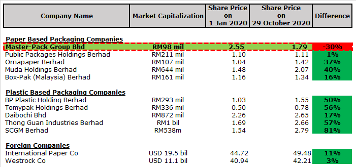 And we see this reflected in the share prices of plastic and paper packaging companies in Malaysia and Globally.