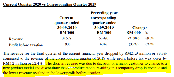 This is mainly from First Solar, recommissioning their current remaining Series 4 lines in Kulim, Kedah to manufacture Series 6 solar panels. This resulted in a temporary drop in revenue. According to First Solar’s Q3 Earnings Call Transcripts, this conversion has been completed in late Q3.