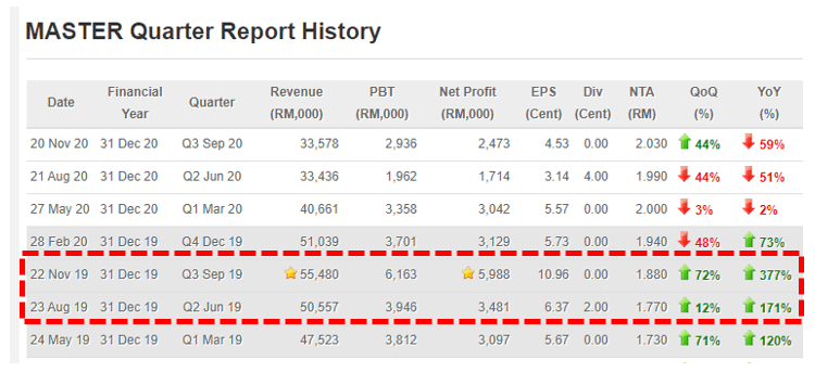 Now, for the first two quarters of 2020, MASTER recorded a lower revenue, due to their Malaysian factories only being allowed to run at 50% capacity. However, this was partially set off by their Vietnam factories which started up in Mid-2019 to support First Solar.