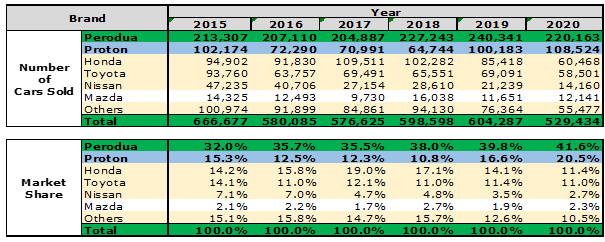 Despite declining number in vehicles sold in Malaysia from 2015 (666,677 cars) to 2019 (604,287 cars.).