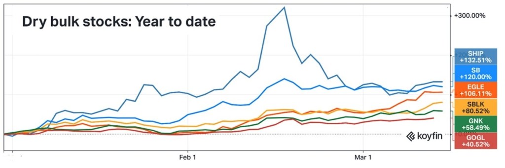 And like the stocks of container shipping companies, the stocks of Dry Bulk Carrier companies have also advanced strongly globally, with the share prices of a few companies rising more than 100%.