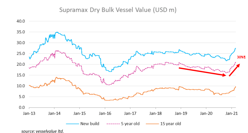 Since then, the prices of vessels around 5-year-old have increased by 30%.