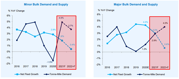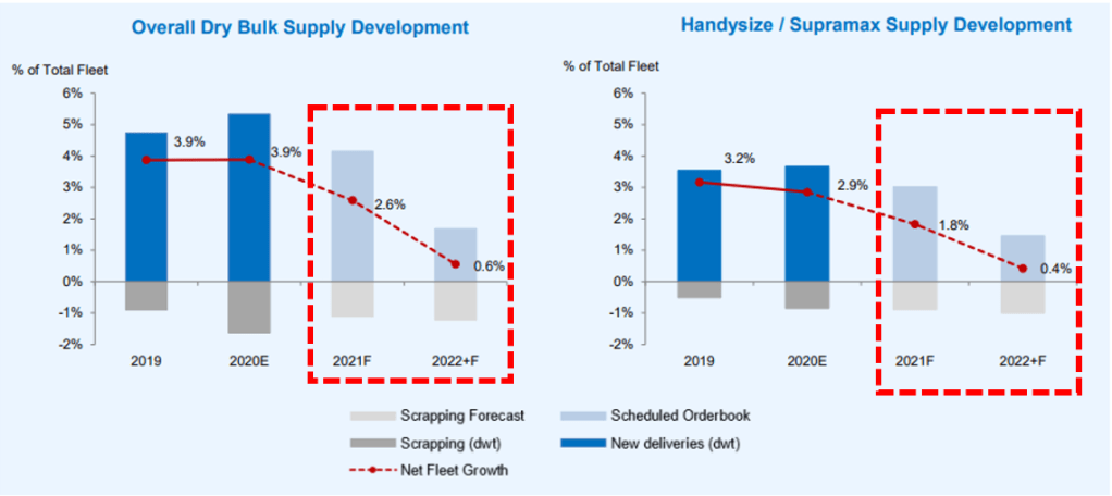 - Insufficient current supply after large amount of bulk ship demolitions due to IMO 2020 and low rates in 2020.