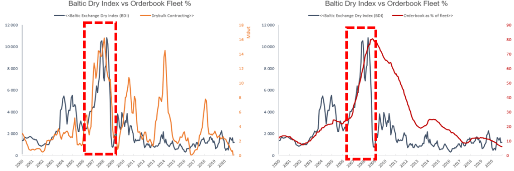 Even with order books at all-time lows, demolitions/scrapping for dry bulkers increased 80% year on year in 2020, taking out excess supply from the market.