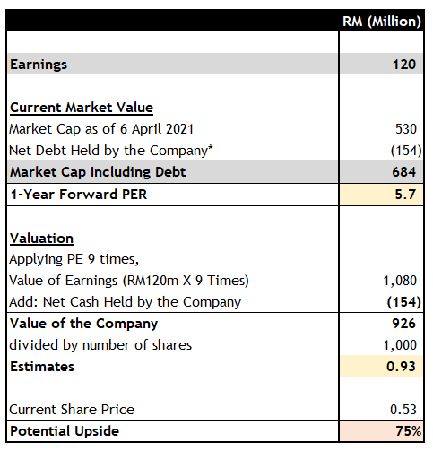 And lastly, I believe my estimate have a large margin of safety, as earnings in 2022 and 2023 likely to be more than RM160 million, which is much higher than its projected 2021 earnings of RM120 million, but this is not included in my estimates.