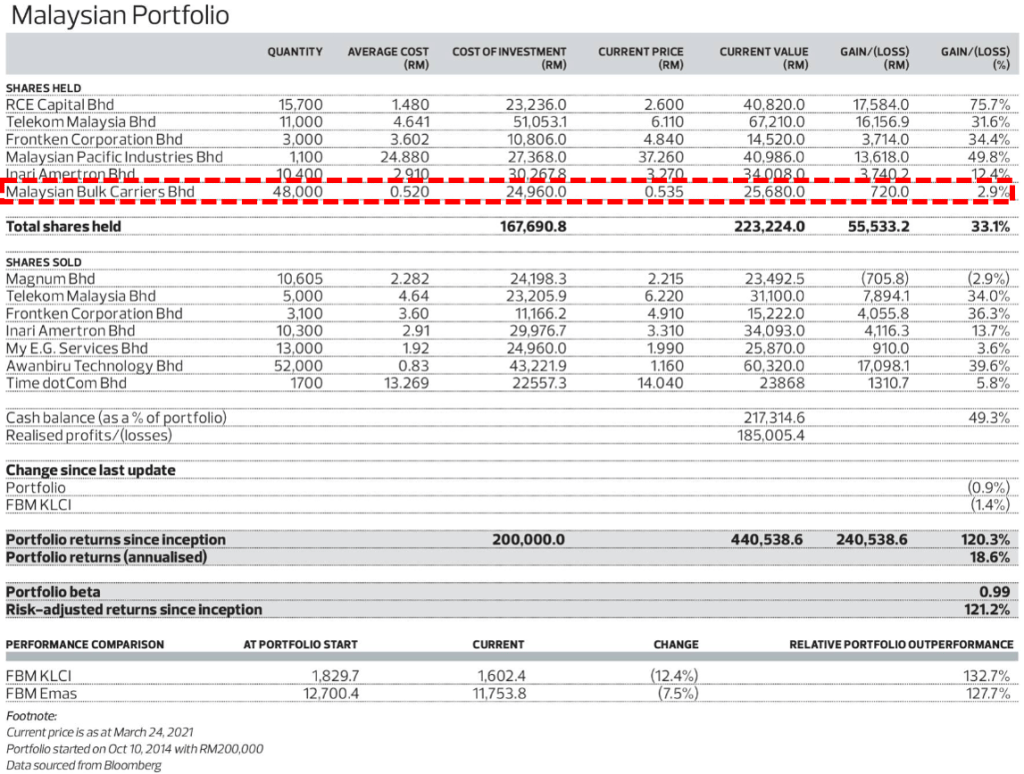 I am referring to Tong Kooi Ong (The Edge’s founder) in Choivo’s last part of the article above, since Choivo mentioned it was reassuring that Tong also had it in his Value Portfolio.
